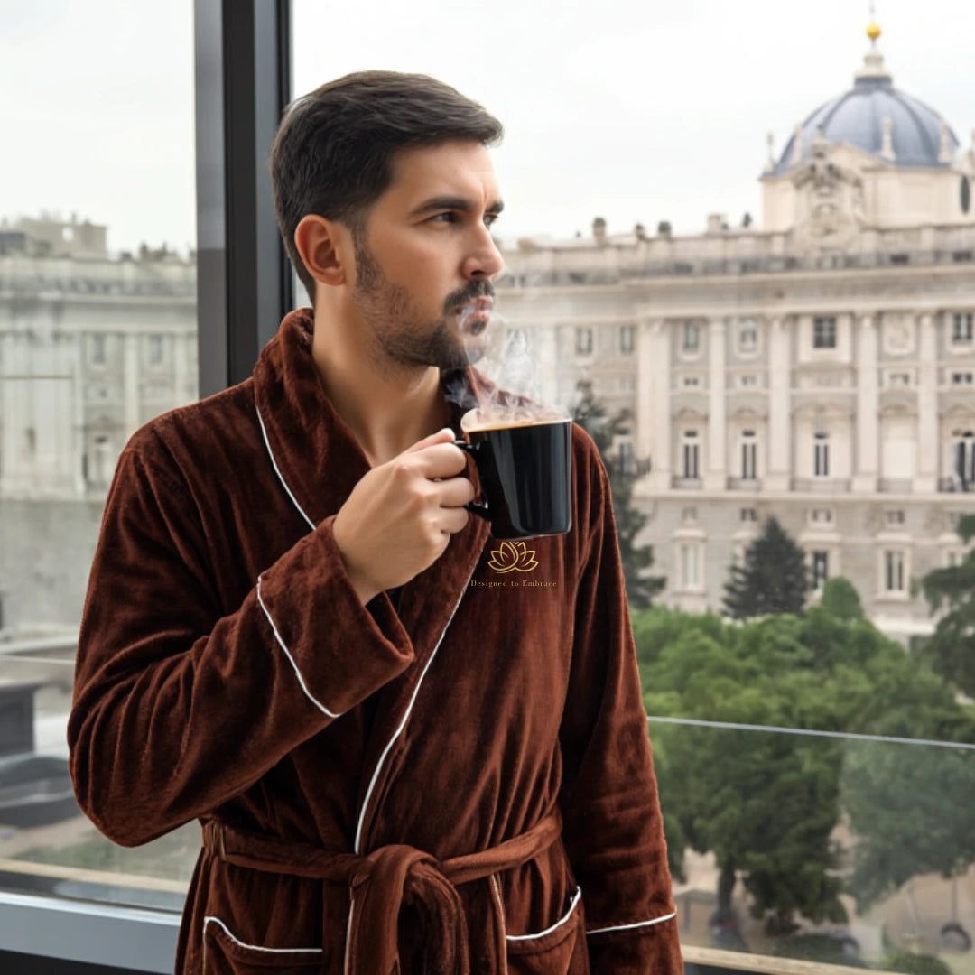 Mit seinem hochwertigen, weichen Material und dem stilvollen Schnitt wird er schnell zu deinem Lieblingsstück. Egal ob nach dem Duschen, beim Sonntagskaffee oder auf dem Weg zur Sauna – du wirst die bewundernden Blicke spüren.